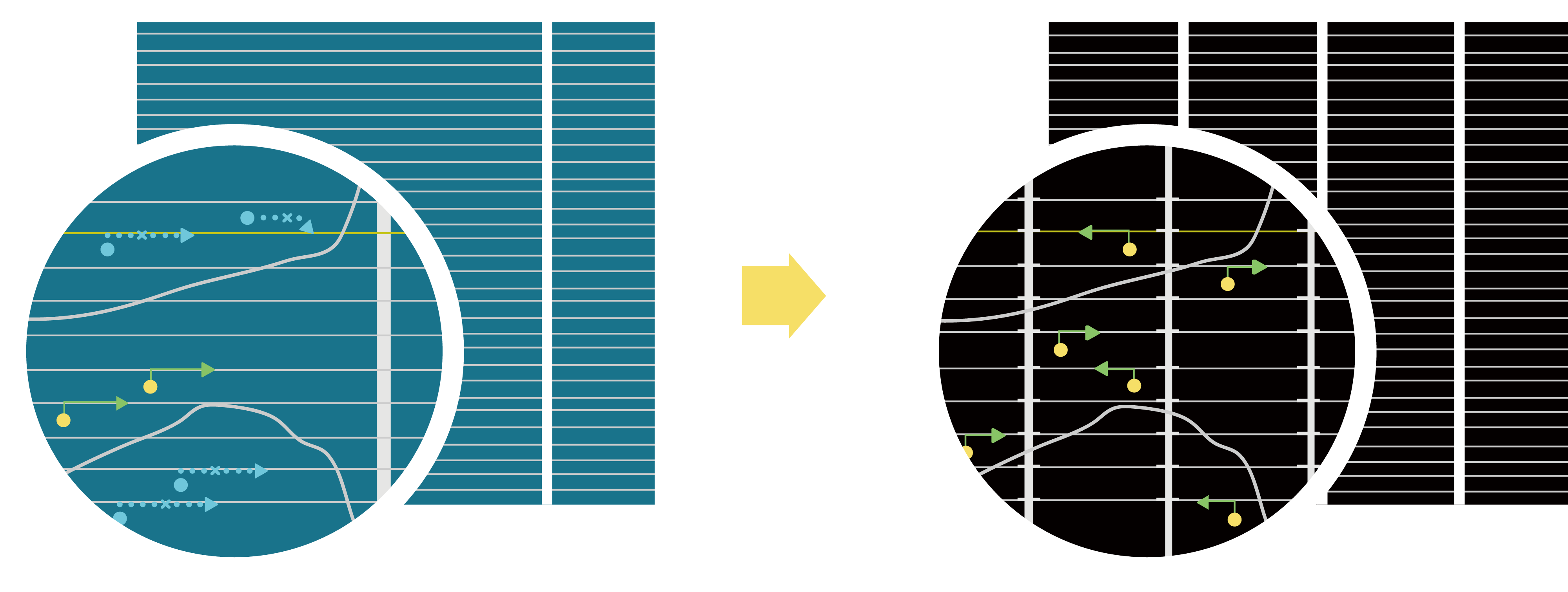 Optimized solar energy cell designs increase the current collection's efficiency, reduce micro-cracks, and allow solar modules to provide stable long-term output performance, increasing operational efficiency.