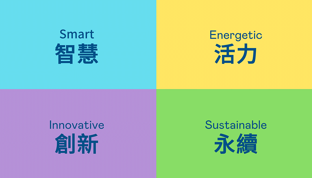 | 从稳重、信赖的腾龙团体中国蓝开创新色彩,注入象征智慧蓝、活力黄、创新紫、永续绿的品牌色及动态多变的几何图形,呼应不设限的「Possibilities」精神,代表多元的专业技术及领域,在碰撞中相互触动、融合、延伸,连续激荡出更多新的可能性。 |