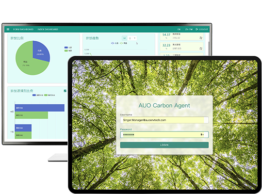 依循 ISO 国际尺度建置出切合国际尺度的全方位碳治理平台 (AUO Carbon Agent),其中温室气体盘查模组可协助客户将组织、产物与供应链的碳排放源数据,透过系统内建的系数资料库自动盘算出碳排量,提升整体盘查作业的效率,并以此拟定恒久减碳战略,到达低碳转型、净零碳排的目标。