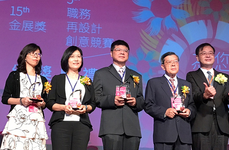 友達榮獲第 15 屆金展獎,由人力資源總部副總經理古秀華 (左二) 代表受獎。 |