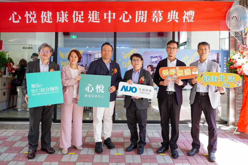 心悅康健促進中心與怡仁醫院相助,並導入友達頤康運動康健治理方案,為樂齡族群打造全新的康健運動空間(圖左至右:怡仁醫院執行副院長黃文豪、承業生醫財務長陳怡君、承業生醫副董事長李典穎、友達光電新事業暨投資治理總部副總經理楊本豫、怡仁醫院副院長廖耕望、友達頤康董事長葉俊正)