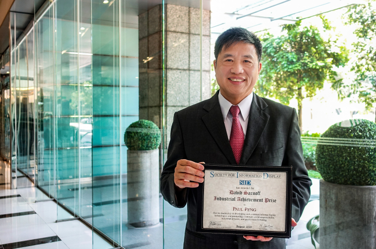 友達光電董事長暨執行長彭双浪獲頒 SID 國際資訊顯示學會 (Society for Information Display,SID)「David Sarnoff 產業傑出貢獻獎」,本屆頒獎典禮雖因疫情無法舉辦,但仍透過精心錄製的影片表達個人及公司獲主辦單位肯定的欣喜之情。